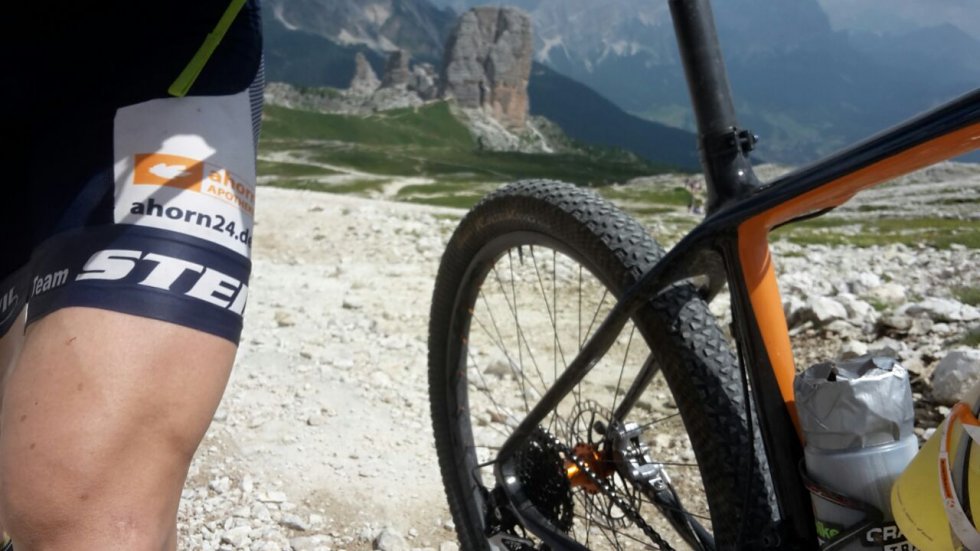 Gestern lief es für unsere beiden Recken endlich besser. Bei feinstem Sonnenschein (kurzem Regen) und einem tollen Dolomitenpanaorama kämpften sie sich von Sillian nach Alleghe. Auf dieser Etappe galt es 90km und 2.500hm zu meistern. Was dabei so los war hat der vorbildliche Steini wieder in Wort und Bild festgehalten: "Heute lief's! Vom Start weg sind wir gut mitgekommen. Am ersten Anstieg haben wir uns kontinuierlich nach vorn gearbeitet. In den anschließenden 20km haben wir ne starke Gruppe erwischt die mächtig Druck gemacht hat, stellenweise fast ein bisschen zuviel Druck. Da mußten wir ganz schön beißen um dran zu bleiben.